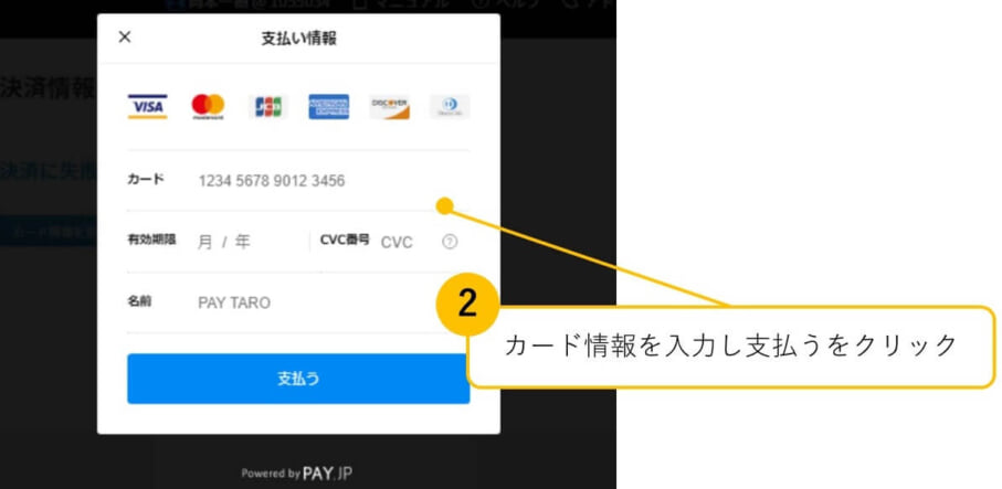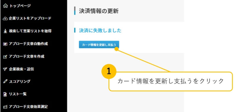 1:管理者アカウントでログイン後、「カード情報を更新し支払う」をクリックします。