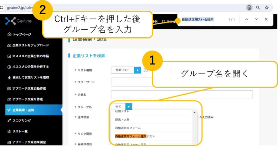 グループ名が多くなり、プルダウンから探すのが手間になった場合、