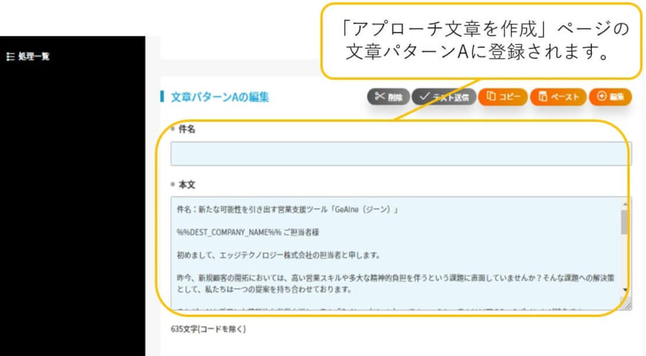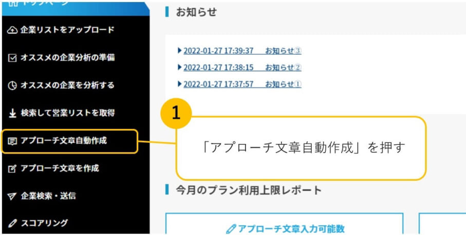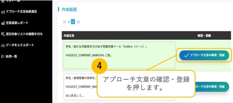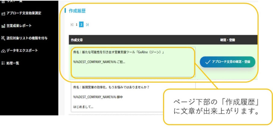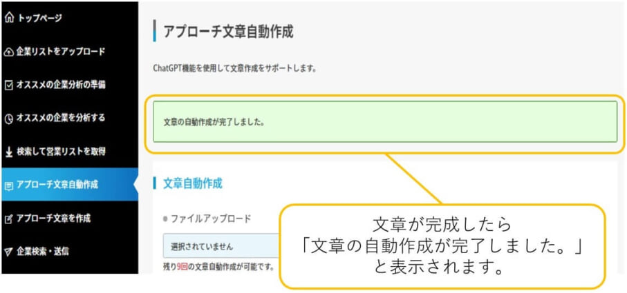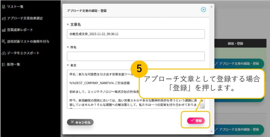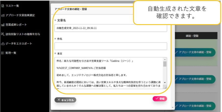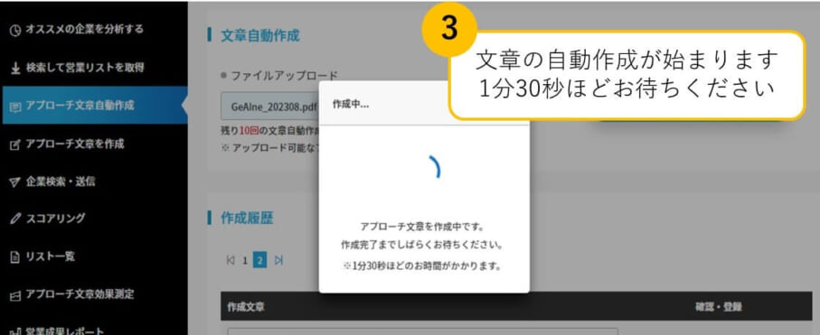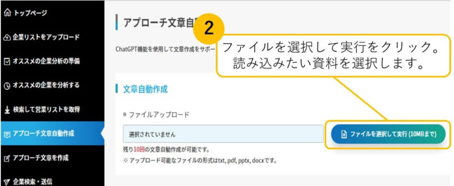 アプローチする文章を資料を読み込ませることで自動で作成します。