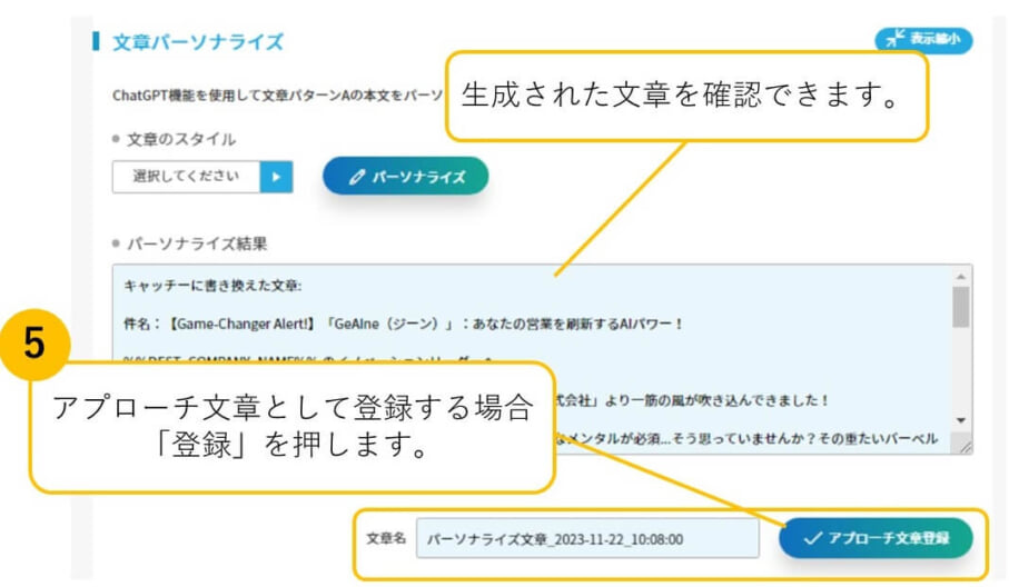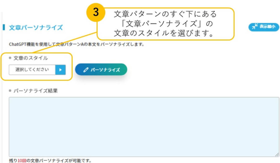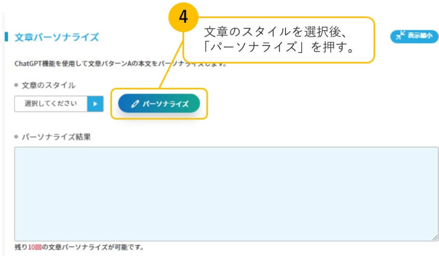 パーソナライズ機能を用いて文章のスタンスを変更することができます。