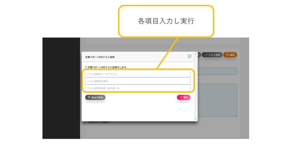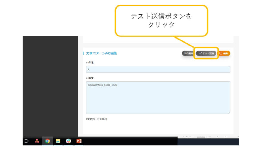 ③文章パターンAもしくは文章パターンBの右上にある「テスト送信」ボタンを押下