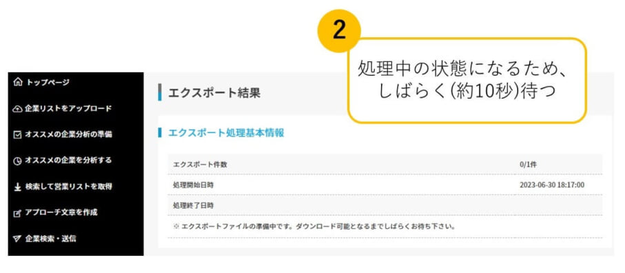 CSVの出力処理が始まります。少し時間がかかるのでそのままお待ちください。