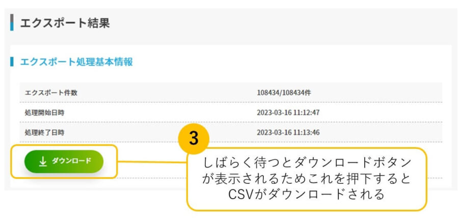 ※CSVのファイルがダウンロードされます。