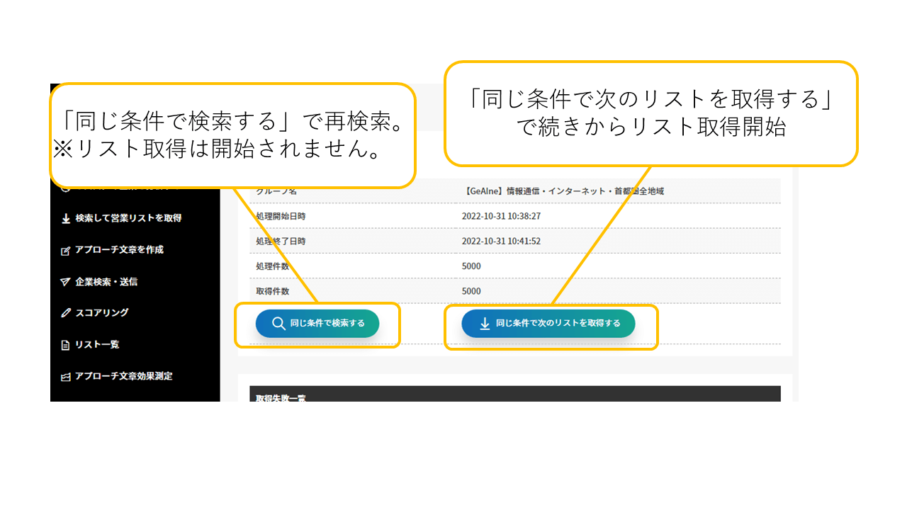 過去実施したリスト取得にて、取得できていない次の企業からリスト取得を行います。