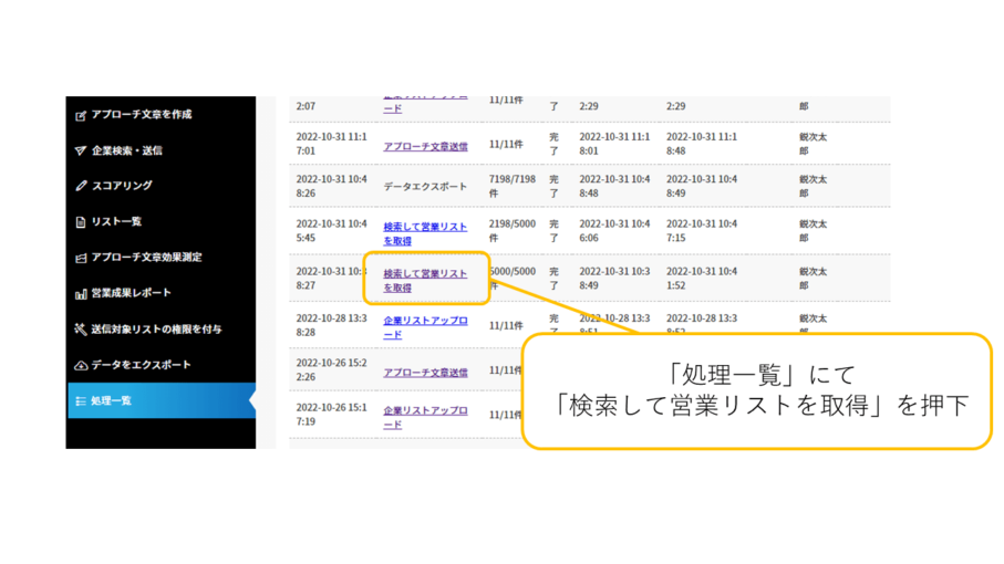 検索して営業リストを取得した際、