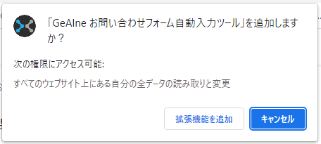 上記画面が出てきたら「拡張機能を追加」を押します。