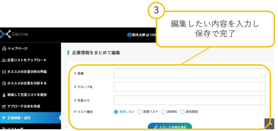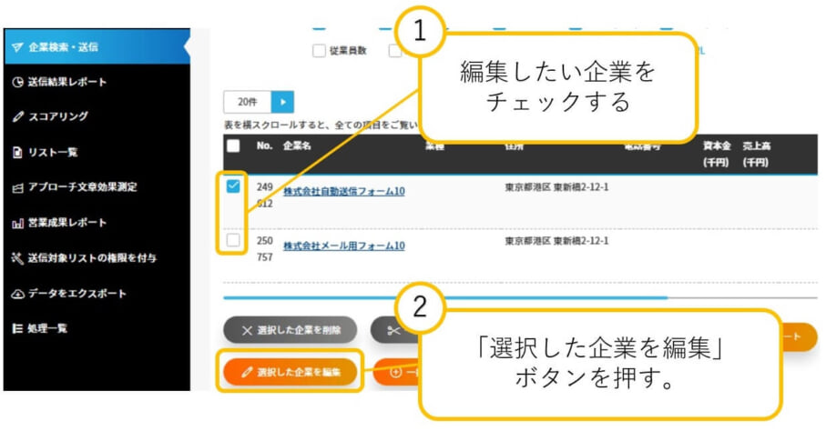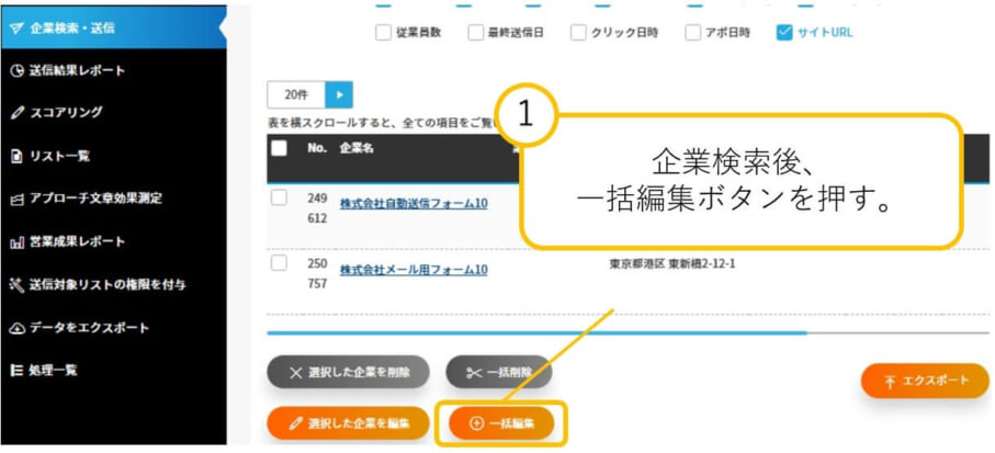1:選択した企業をまとめて編集する場合