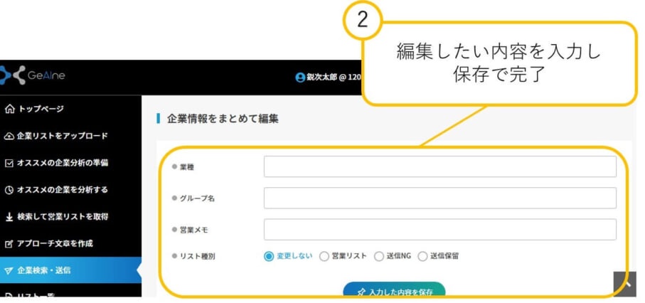2:検索に引っかかった企業を全て一括で編集する場合