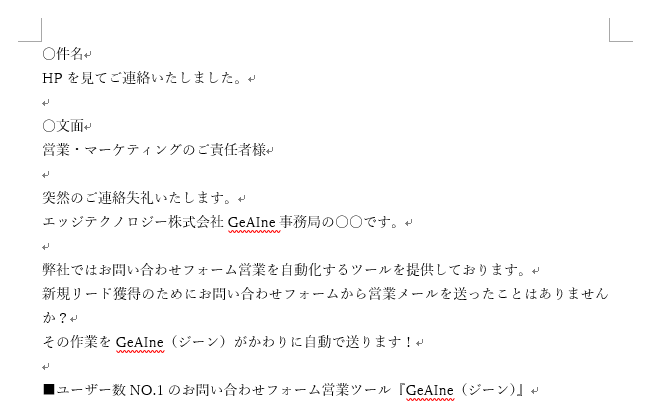 こちらのページで文字数を少なめにした文面のサンプル(Word形式)を無料でダウンロード頂けます。